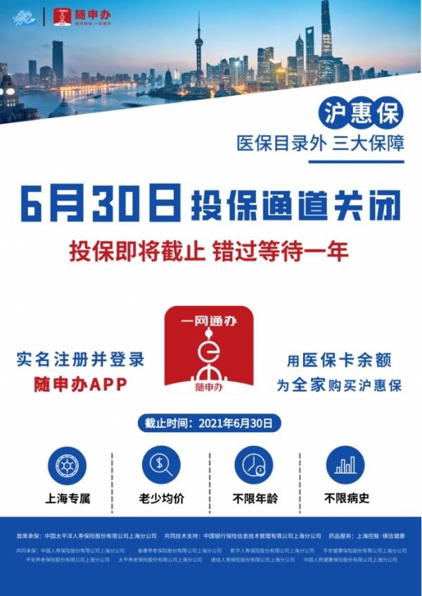 今年4月27日,为上海市民量身定做的保险品种“沪惠保”刚一上市,俨然为上海保险市场投下震撼弹,瞬间刷爆朋友圈,挤占全网头条,成为网红险种。昨日,记者从“随申办市民云”APP了解到,“沪惠保”2021年参保窗口期将在6月30日结束,7月1日保险正式生效。尚未投保的市民,6月30日之前,还可以继续购买。