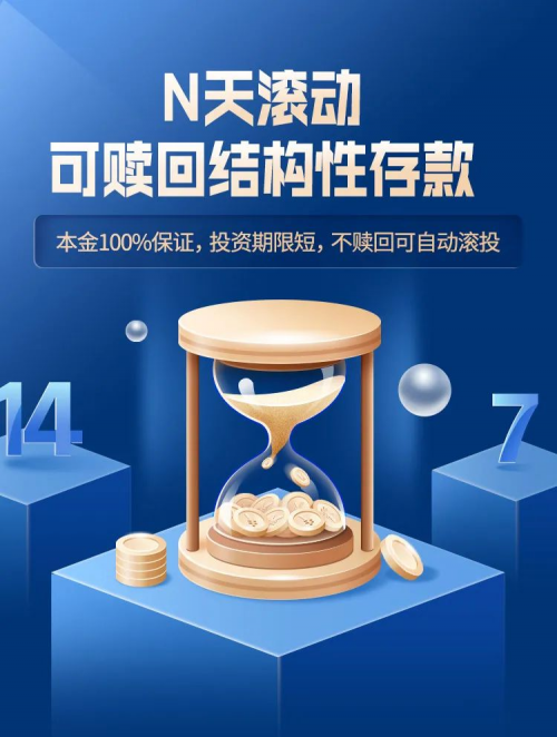 此外还有7天滚动结存(挂钩欧元兑美元汇率)、14天滚动结存(七天回购定盘利率)等,均可实现资金增值。本金存放在客户的结构性存款专属账号,可以进行日常的查账对账工作;投资周期最短仅需7天,支持预约赎回、实时赎回;一次签约认购,可到期自动续存,支持7*24小时自助预约认购。收益高又安全的理财服务,一键即享。