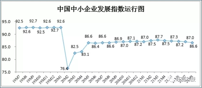 据中小企业协会最新发布的数据显示,8月我国中小企业发展指数为86.6,与去年同期持平,但比7月下降0.4点,已经连续5个月回落。这表明中小企业恢复速度有放缓趋势,而随着原材料价格波动,劳动力成本的增加,中小企业成本不断攀高,叠加融资难融资贵问题,让整个供应链上中小企业发展面临更大风险。
