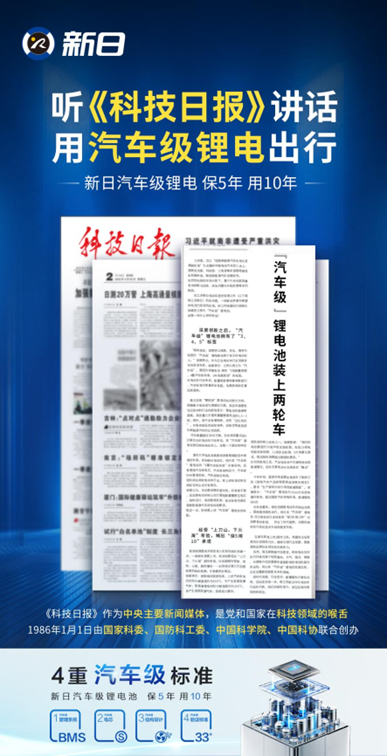 但其实电池技术过硬,就不必那么受制于外界温度影响。像“新日汽车级锂电池”,高品质开辟行业先河,“4重汽车级标准”重重对标满足国家汽车级标准,荣获国家级科技媒体《科技日报》、主流媒体央视网以及清华大学两大教授权威认可。