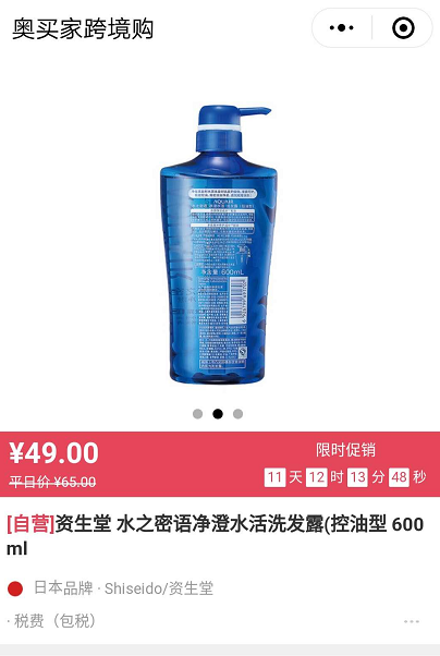 富含水源净活成分,多效凝水修复成分等,净化洗发时水源本身对头发的侵蚀,倍润呵护直达发芯,使用后秀发净润柔顺。活动期间用户朋友仅需要付49元,就可以将600ml大瓶收入囊中,如此低的折扣让利,不管你心不心动,反正本宝宝是很心动了。