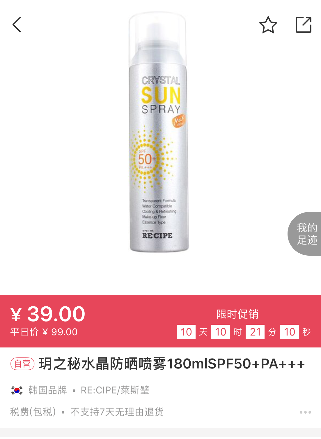 玥之秘水晶防晒喷雾180ml
