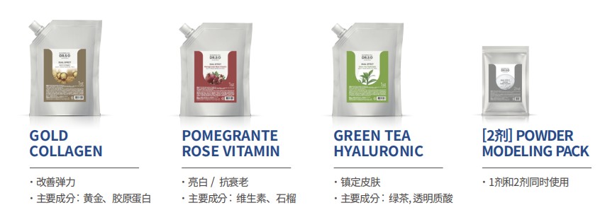 DOCTOR凝胶软膜分为金色骨胶原、石榴玫瑰维生素、绿茶透明质酸与魔力定型粉组合而成,可以通过滋润的皮肤保湿和强化弹力改善皮肤纹路,补充皮肤活力和防止衰老,有效地去除角质,去除皮肤活性氧,产生抗氧化效果。
